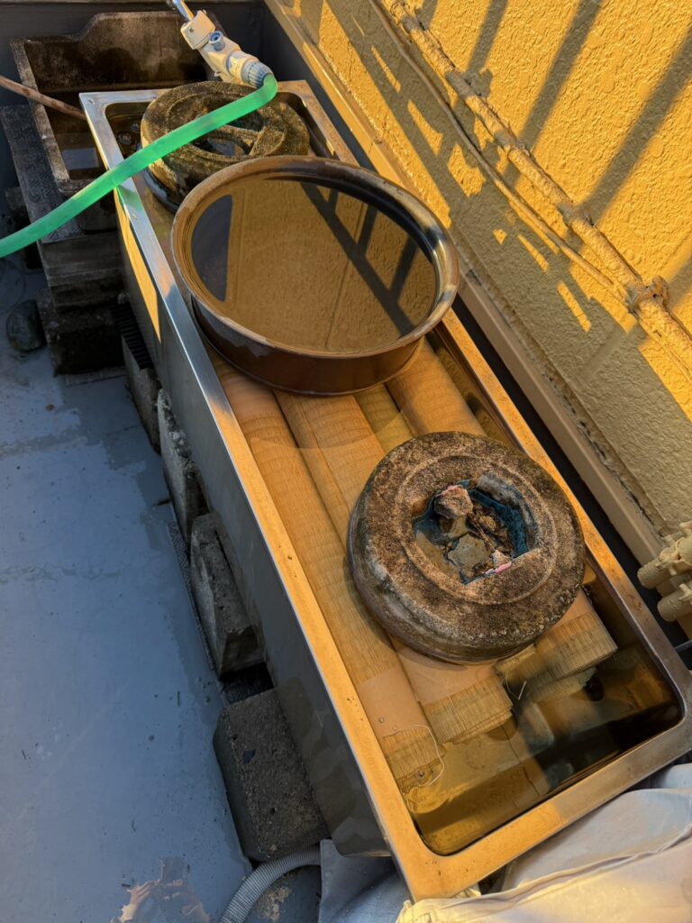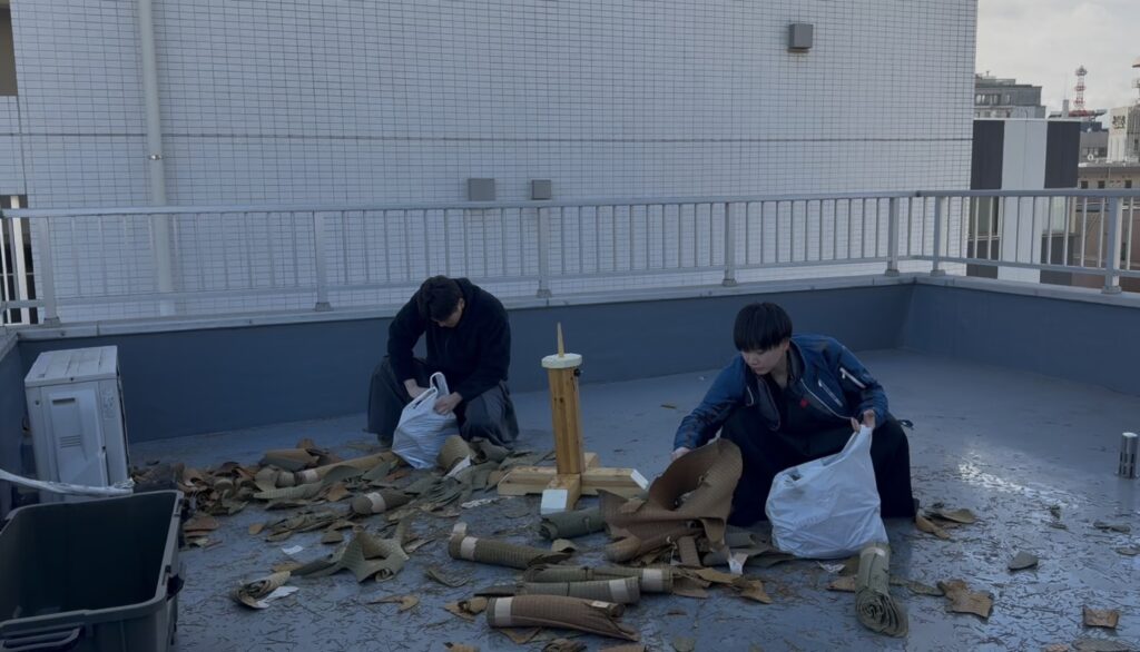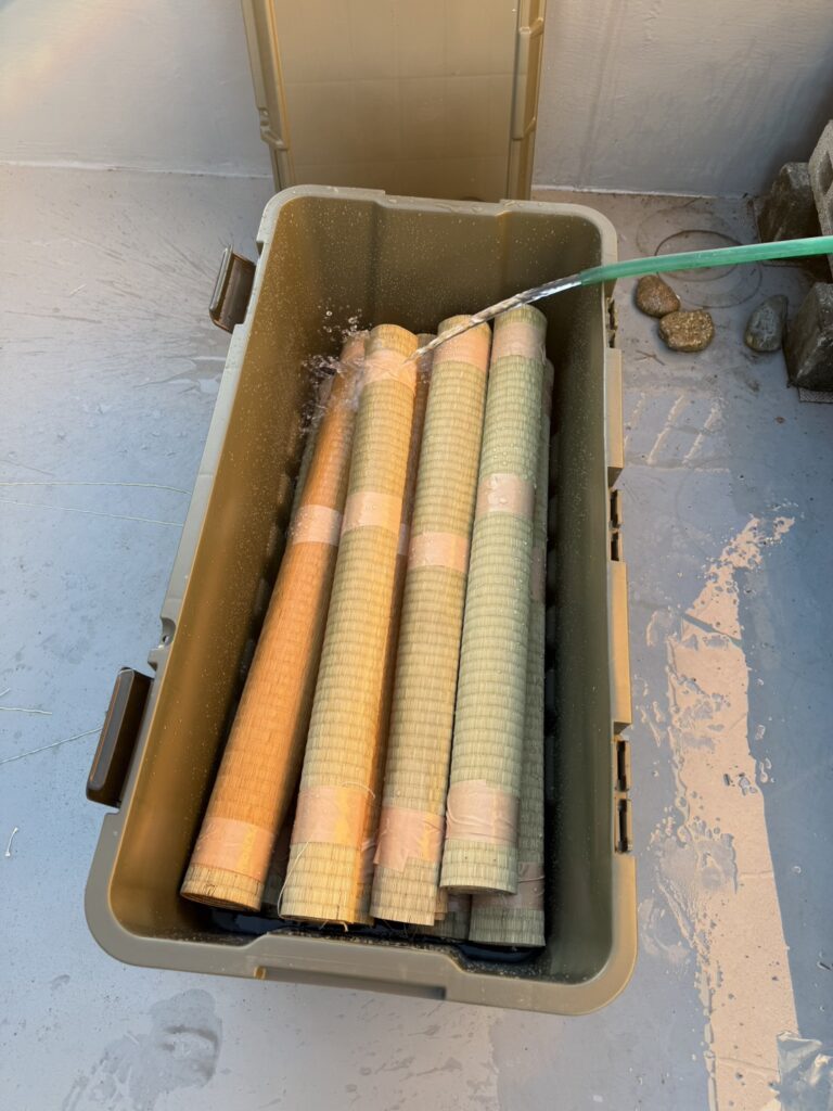 今回から、新しく畳表を水に浸ける容器を増やしたことで、これまで以上に多くの畳表を、スムーズに準備ができるようになりました。