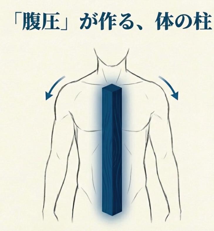 こうしてお腹からしっかり息を吐くと、自然と「腹圧」がかかります。 この腹圧がかかっている状態こそが、武道でいう「腰が据わった」状態。 肩の余計な力はスッと抜けているのに、体の芯には一本の太い柱が通ったようにどっしりと安定する。そんな不思議な感覚になれるんです。